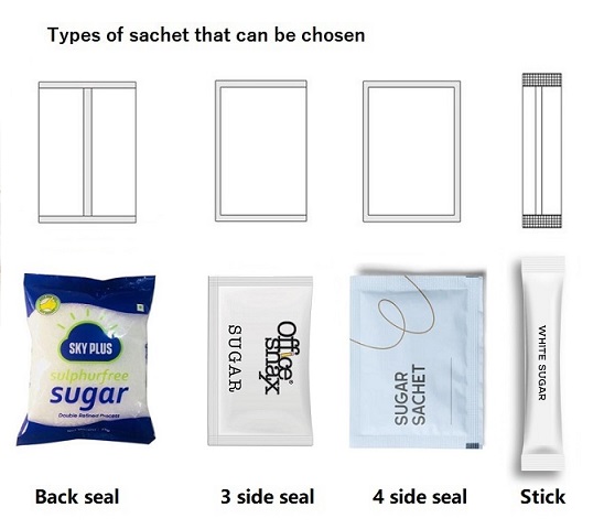 Granular packing machine can be used to pack various fine & small granular into sachets, like sugar, salt, rice, peanuts, tea, gari, coffee beans, grains, banana chips, potato chips, plantain chips, seeds, chin chin, nuts, small snack, small biscuits, brown sugar, small dry food, detergent powder etc